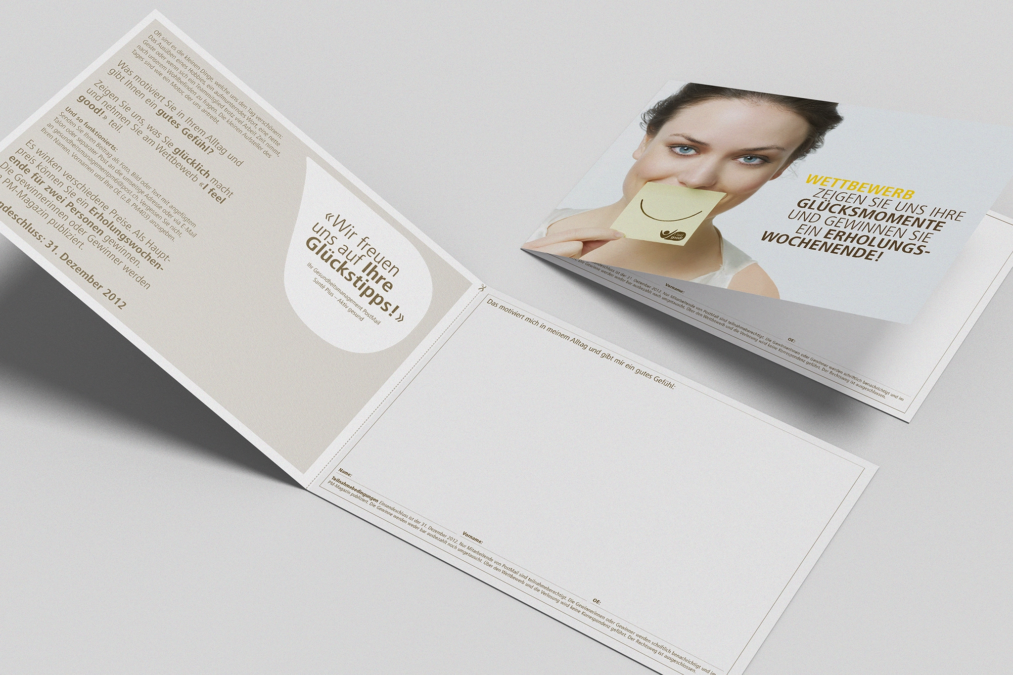 Diese Sensibilisierungskampagne für psychische Gesundheit richtete sich an die Mitarbeiter der Schweizerischen Post. Wir haben das gesamte Konzept in Zusammenarbeit mit unserer Partneragentur Klarkom erarbeitet: Die Massnahmen reichten von der Logoentwicklung über ein Gewinnspiel, einen Test, Poster, Post-its und Aufkleber. Resonanz und Erfolg erzeugten auch bei uns good feelings.