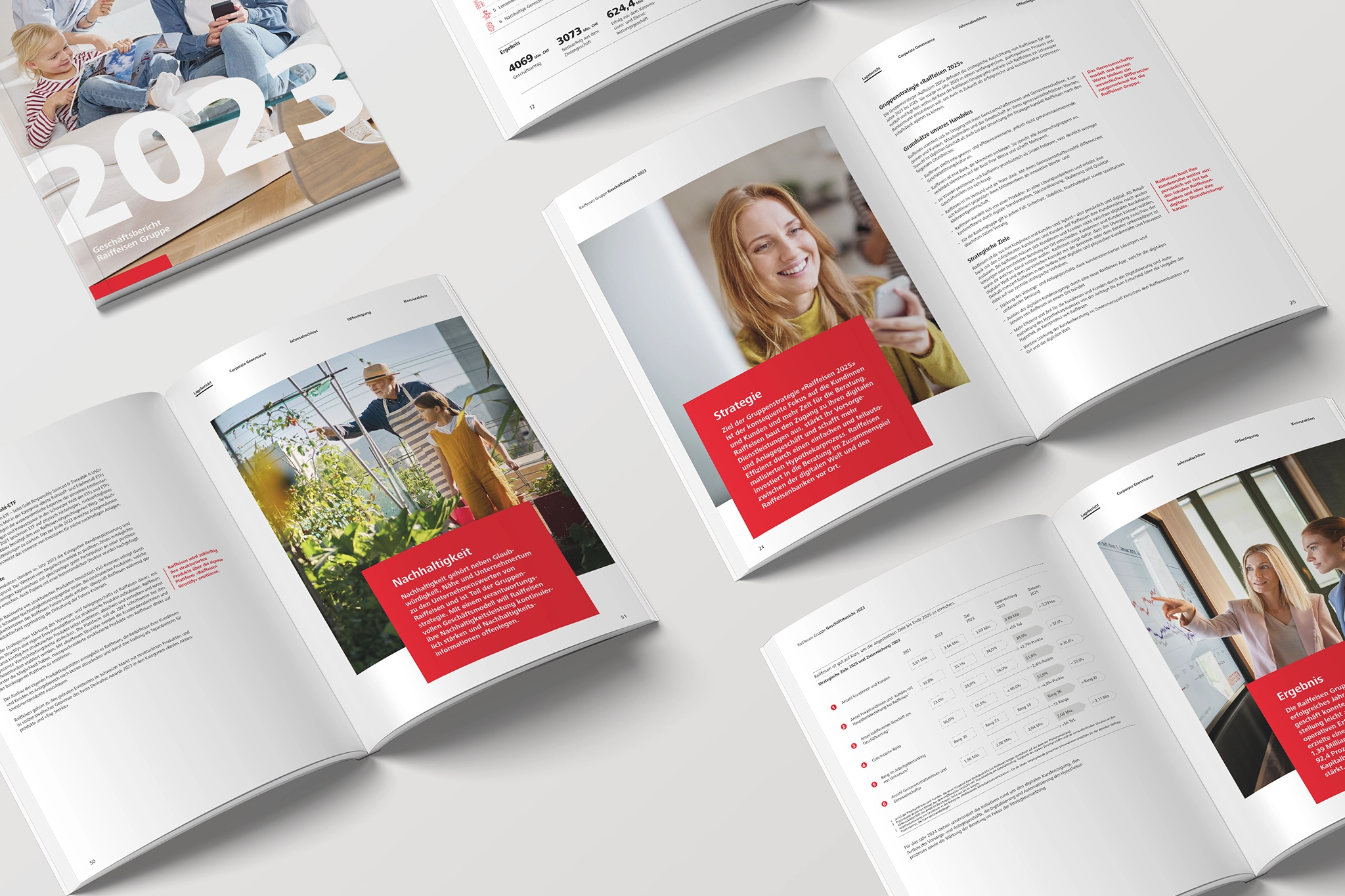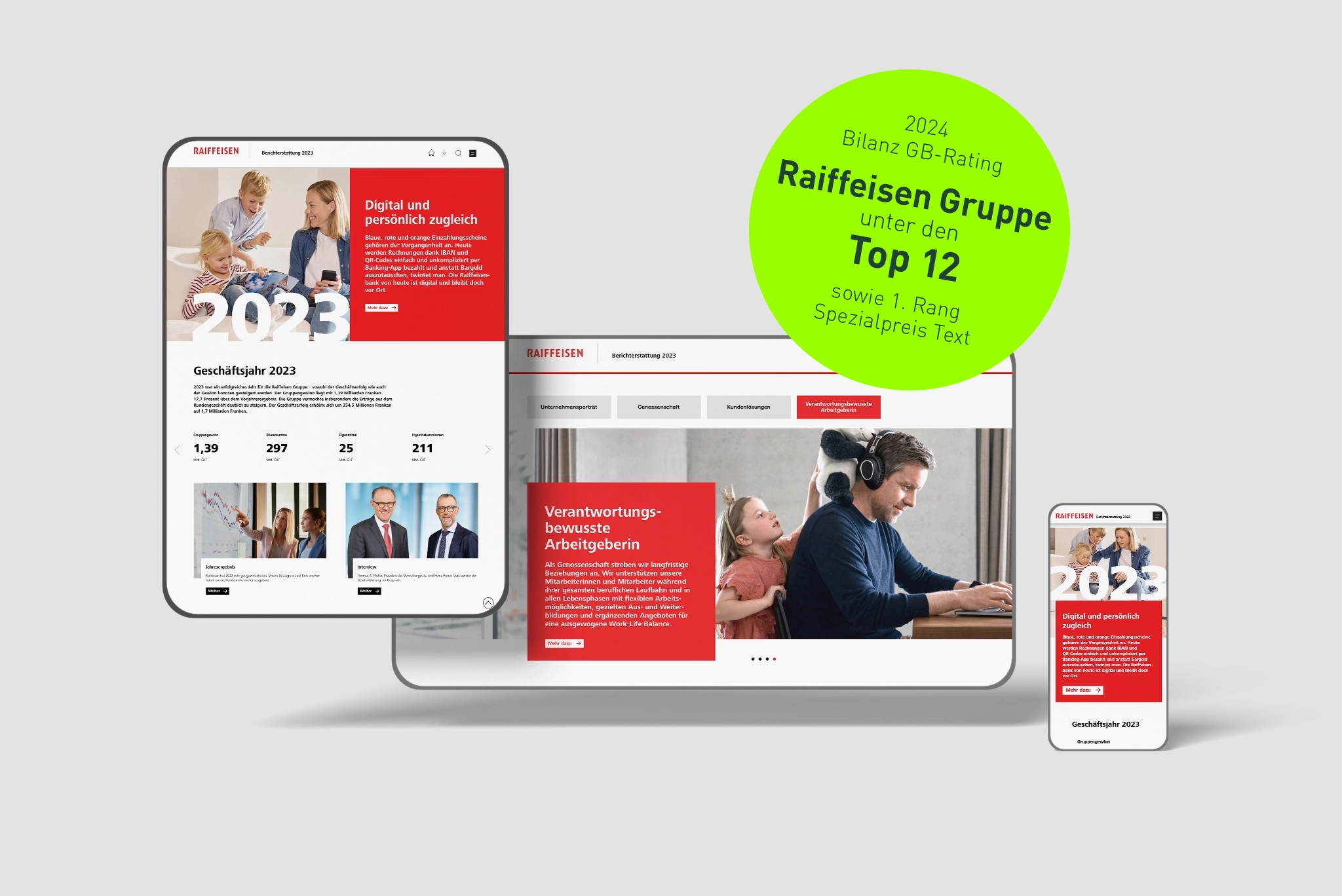 Neben einer visuellen und multimedialen Aufwertung unterstützen wir Raiffeisen in der inhaltlichen Neuausrichtung. Die Berichterstattung wurde in einen Kür- und einen Pflichtteil aufgeteilt. Der Geschäftsbericht (Lagebericht, Corporate Governance und Jahresabschluss) der Gruppe, der Geschäftsbericht von Raiffeisen Schweiz, die aufsichtsrechtliche Offenlegung, die Klimaoffenlegung nach TCFD sowie der GRI-Index wurden als bildschirmoptimierte, klickbare PDFs ausgestaltet. Ergänzend zu diesen Pflichtpublikationen werden die wichtigsten Schritte in der Strategieumsetzung im Geschäftsjahr in einem Online-Jahresbericht für ein breiteres Publikum aufbereitet.